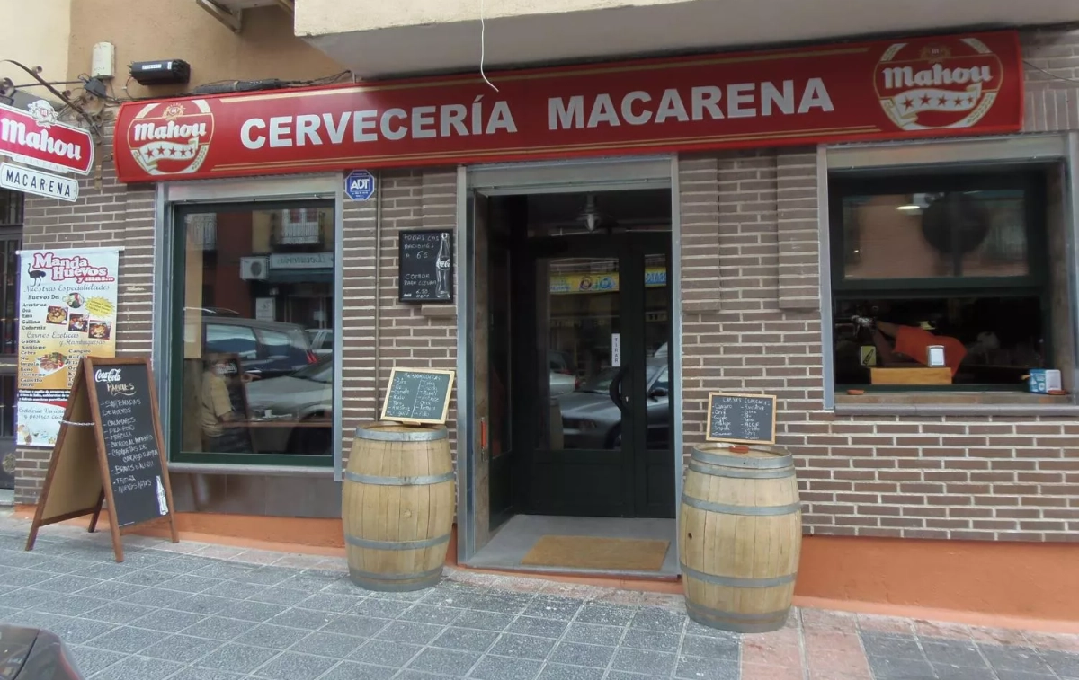 Enfrente hay una tienda de pinturas, un locutorio y una correduría de seguros. En el exterior del local, la terraza la componen tres barriles y dos mesas altas sobre las que se apostan los clientes. Una vez que uno accede al interior, el escudo del Rayo puede hacer pensar que el Macarena es un astro más de la galaxia de bares del barrio madrileño de Vallecas. Pero si uno presta atención a las pistas, puede intuir que no es un sitio normal. El personal, que se reduce a los dos dueños y algún colaborador puntual, viste un polo con el simpático dibujo de una avestruz, y aquí y allá se ubican cáscaras de huevos que podrían parecer sacadas del set de Jurassic Park.