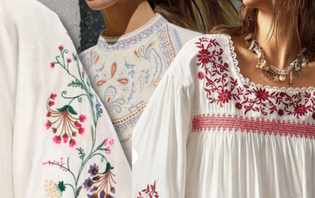 Las nuevas colecciones de marcas como Zara, Mango y Desigual, e incluso marcas más económicas como Shein o Temu, han recuperado esta pieza reinterpretándola con un aire más sofisticado. El resultado son blusas fluidas, normalmente en tonos blancos o crema, adornadas con delicados bordados florales en colores vibrantes que aportan un toque artesanal muy especial.