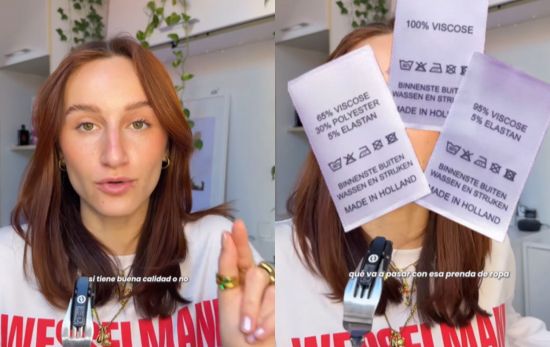 Esta creadora de contenido lo tiene claro: “Antes de comprar una prenda analizar su composición merece el precio que tiene, porque si te están vendiendo una camiseta 100% poliester, te están tomando el pelo”, advierte.