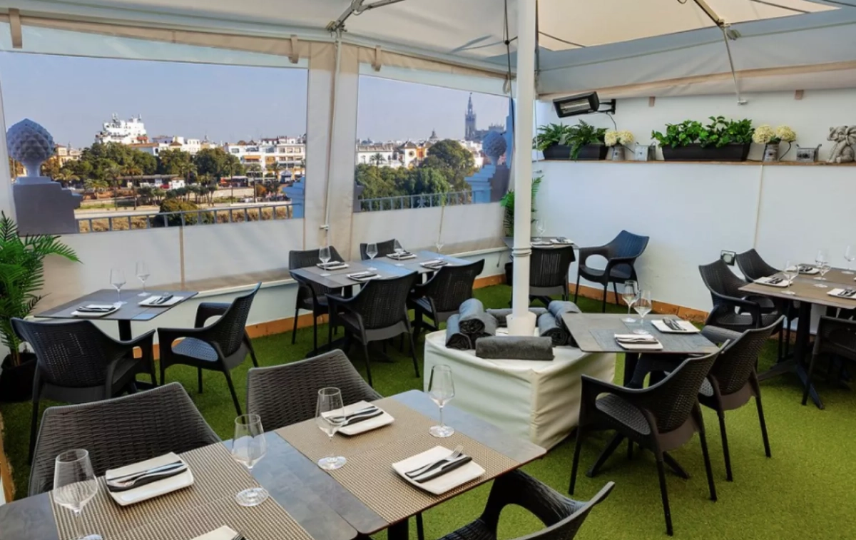 Según explica Aguado, se trata de unas mesas ubicadas en una zona de la terraza donde las vistas al río Guadalquivir están garantizadas. Un servicio que, además, añade otros como la copa de cava a modo de recibimiento.
