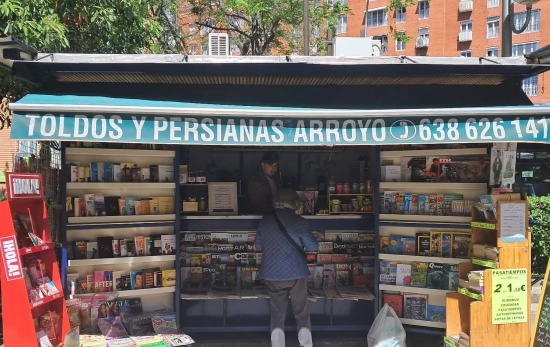 Este quiosco reabrió hace un par de meses en el número 37 del Paseo de las Acacias, una arteria de Madrid que une el área de Embajadores con la parte de la ciudad que ya mira al río. Es una zona residencial que conserva fruterías y bares tradicionales, y ahora brinda a los vecinos la posibilidad de intercambiar un ‘buenos días’ y adquirir periódicos, revistas especializadas (desde Panenka a los clásicos Vogue o Cuerpo y Mente), pasatiempos (dos por 1,50 euros) e incluso una pequeña selección de libros de segunda mano.