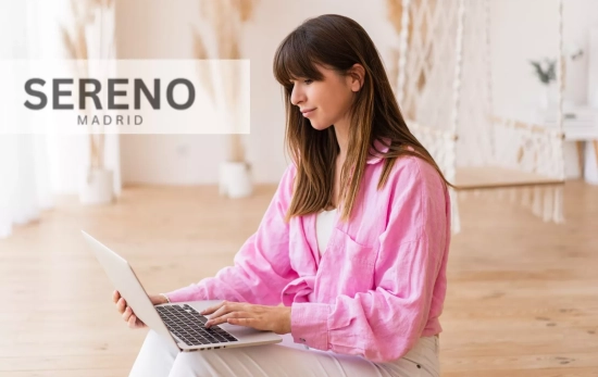 Sereno Madri trata de aparentar sofisticación e clareza. Na página de início aparece a imagem de uma mulher com gafas de sol e um convite a "elevar teu estilo", mas na parte de acima um claim deveria fazer suspeitar aos compradores: "A VENDA DE FECHAMENTO TERMINA ESTA NOITE ÀS 23:59 H".
